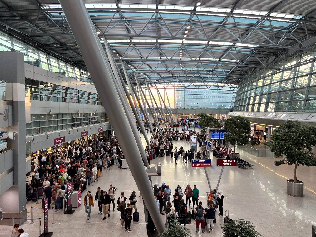 Bei diesen Menschenmassen kann es schwer werden, den Überblick zu bewahren – oder auf sich aufmerksam zu machen, wenn man im chaotischen Flughafenbetrieb Hilfe benötigt. Eine neue Maßnahme des Düsseldorfer Airports soll aber genau das für eine ganz bestimmte Personengruppe nun vereinfachen.
