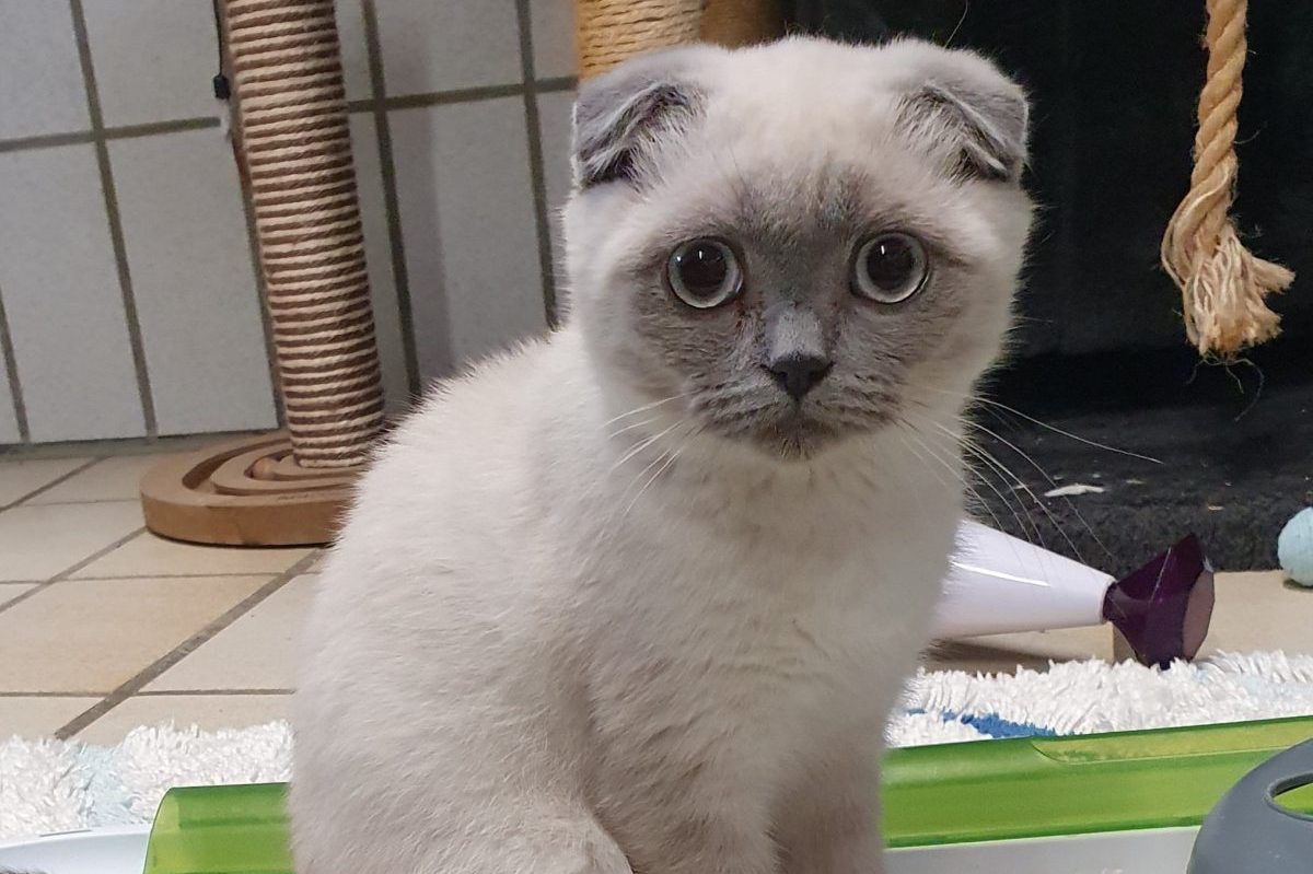 Klee ist eine Scottish Fold Katze. Wie der Name verrät, hat Klee Faltohren. Hintergrund ist ein genetischer Defekt, der zu Knorpel- und Knochenschäden führt. Und darunter leidet das arme Tier sehr.