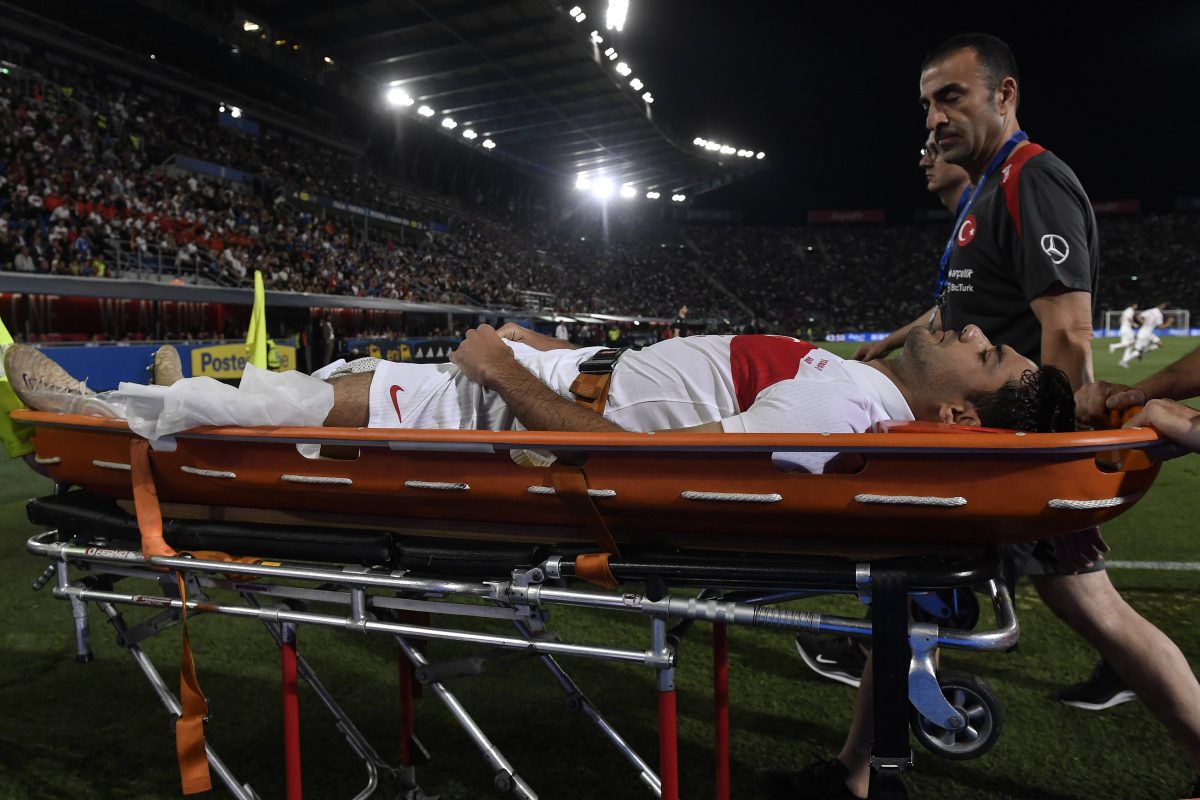 In der 38. Minute ging Kabak nach einem Zweikampf mit Italiens Retegui, der den Körper etwas härter reinstellte, zu Boden. Der Türke schrie danach laut auf und hielt sich das Knie. Die türkischen Ärzte eilten sofort zum Hoffenheim-Star.