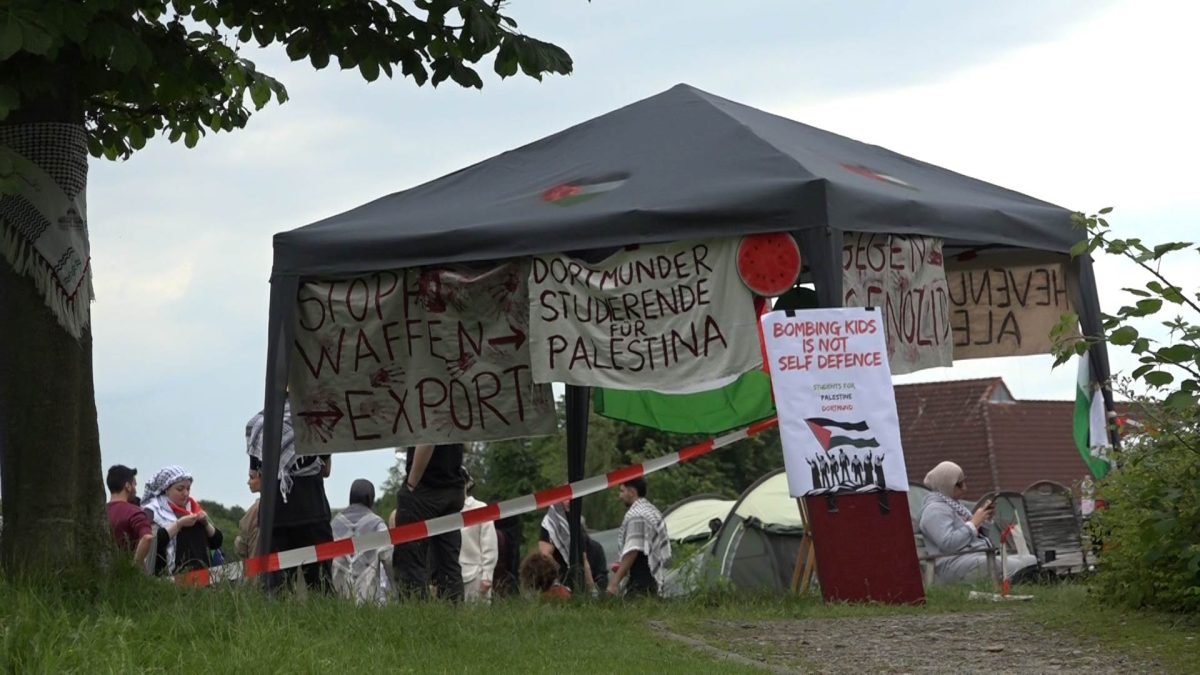 Proteste an der Fachhochschule in Dortmund! Direkt am Campus haben Studenten ein besonderes Camp errichtet. Der Hintergrund ist ernst.