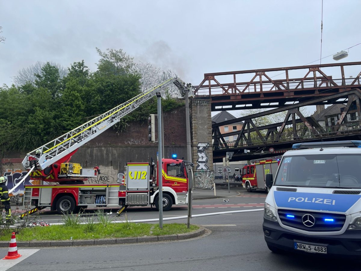 Seit etwa anderthalb Stunden ist die Feuerwehr bereits im Dortmunder Norden bereits im Einsatz. Aufgrund der starken Rauchentwicklung musste die Regionalbahnstrecke unweit des Borsigplatzes vorübergehend gesperrt werden. Denn diese verläuft ausgerechnet über die verrauchte Brücke.