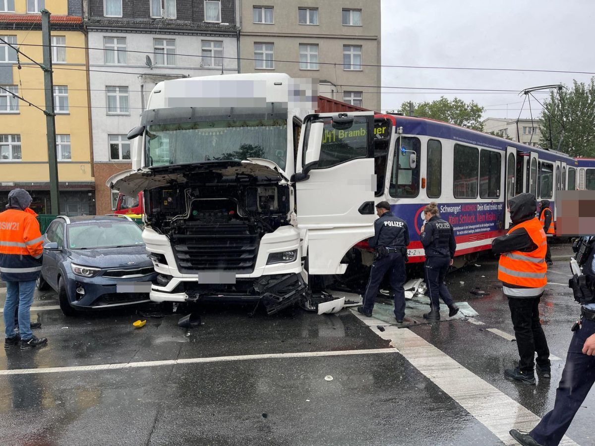 Glücklicherweise wurden durch den Zusammenprall keine Personen eingeklemmt. Allerdings verletzte sich der Lkw-Fahrer (61) aus Aachen schwer, die Autofahrerin (70) aus Dortmund kam mit leichten Verletzungen davon. Beide kamen ins Krankenhaus. Die Insassen der Straßenbahn und der Fahrer aus Dortmund (43) blieben unverletzt.