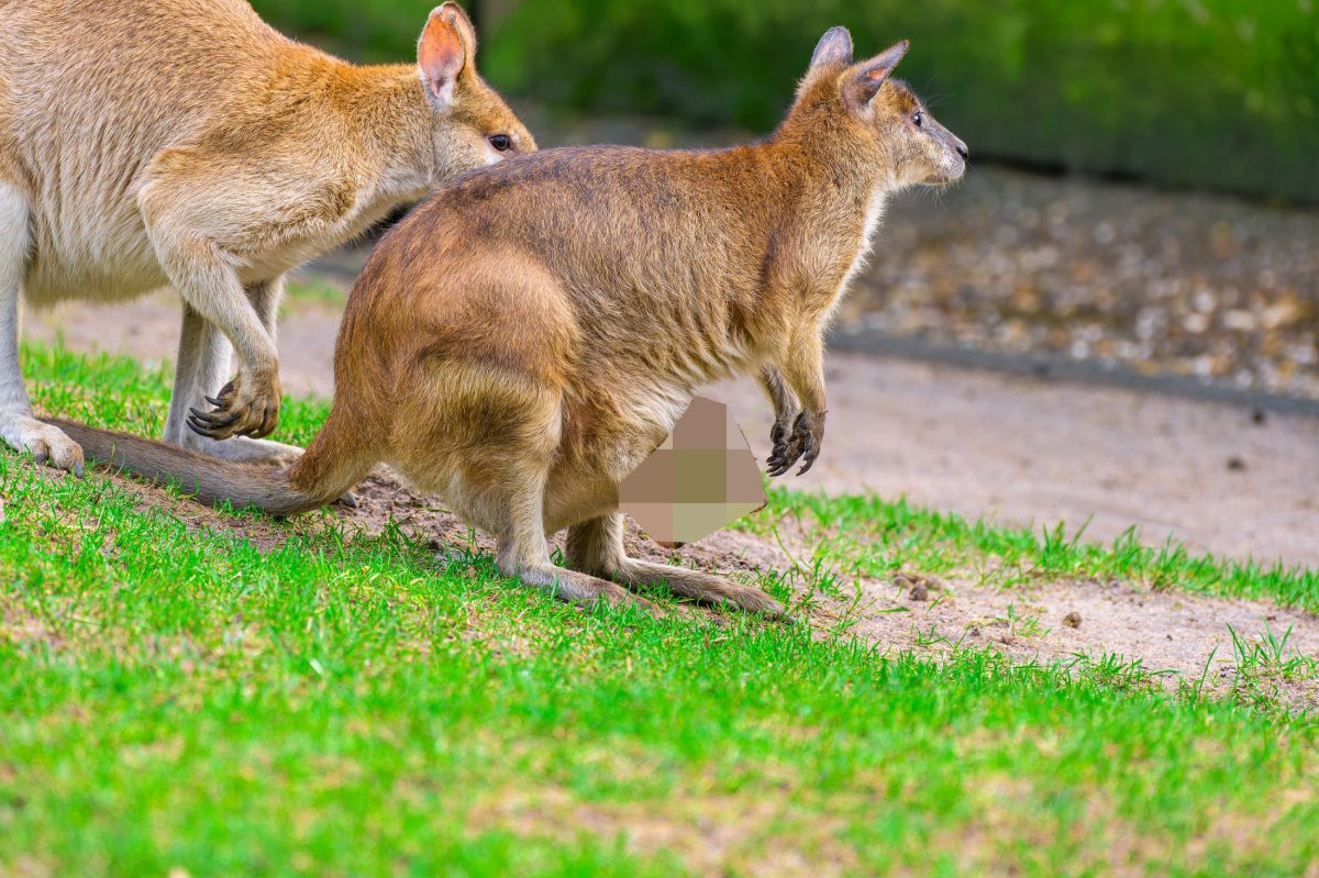 Schon im August 2023 sollen die beiden Flinkwallabys das Licht der Welt erblickt haben, nur hatte davon niemand etwas mitbekommen. Wie kann das sein? „Junge Kängurus sind bei ihrer Geburt winzig klein und nur wenige Gramm schwer“, erklärt die Beuteltier-Expertin. „Selbstständig krabbeln die Jungtiere in den Beutel und wachsen hier für die nächsten Monate unsichtbar heran.“ Erst ab vier Monaten etwa lassen sich Bewegungen im Beutel auch aus der Ferne beobachten.