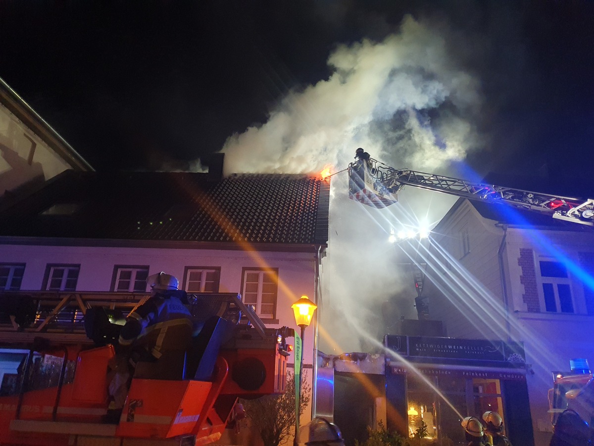 Dramatische Szenen am frühen Sonntag (1. Oktober) in Essen-Kettwig. Dort stand in den frühen Morgenstunden plötzlich ein historisches Gebäude in Flammen. Die Feuerwehr Essen kämpfte verzweifelt gegen den Brand des rund 400 Jahre altes Fachwerkhauses an der Hauptstraße 84.