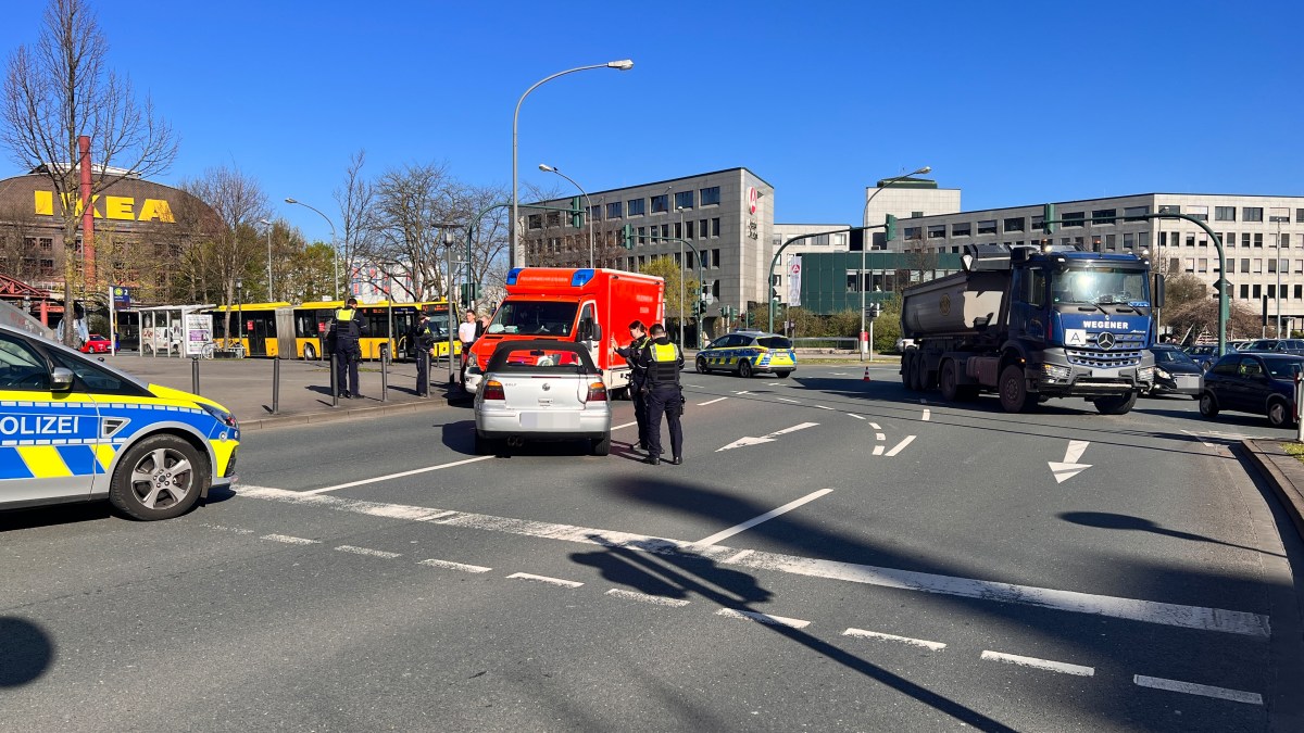 Die beiden Fahrzeuge prallten während des Abbiegevorgangs ineinander: Während der LKW die mittlere Fahrbahn befuhr, fuhr der VW mit Herner Kennzeichen auf der linken Spur.