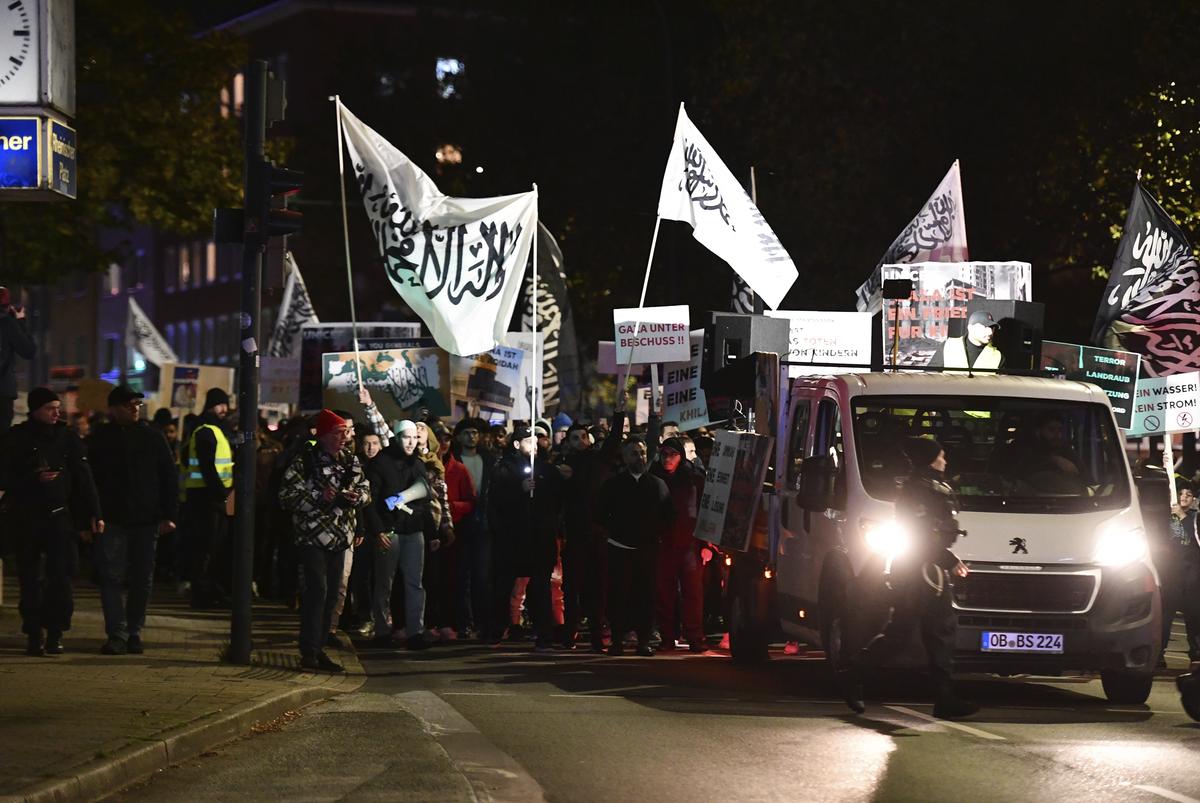 Laut Polizei Essen blieb die Lage am Freitagabend ruhig. Augenzeugen zeigten sich jedoch mehr als beunruhigt von den Szenen, die sich zwischen Viehofer Platz und dem Kreisel am Limbecker Platz abspielten. Denn die zeigten ein anderes Bild. Statt Pro-Palästina-Demo war hier ein regelrechter Islamisten-Aufmarsch zu sehen, Flaggen mit IS-ähnlichen Symbolen wurden geschwenkt.