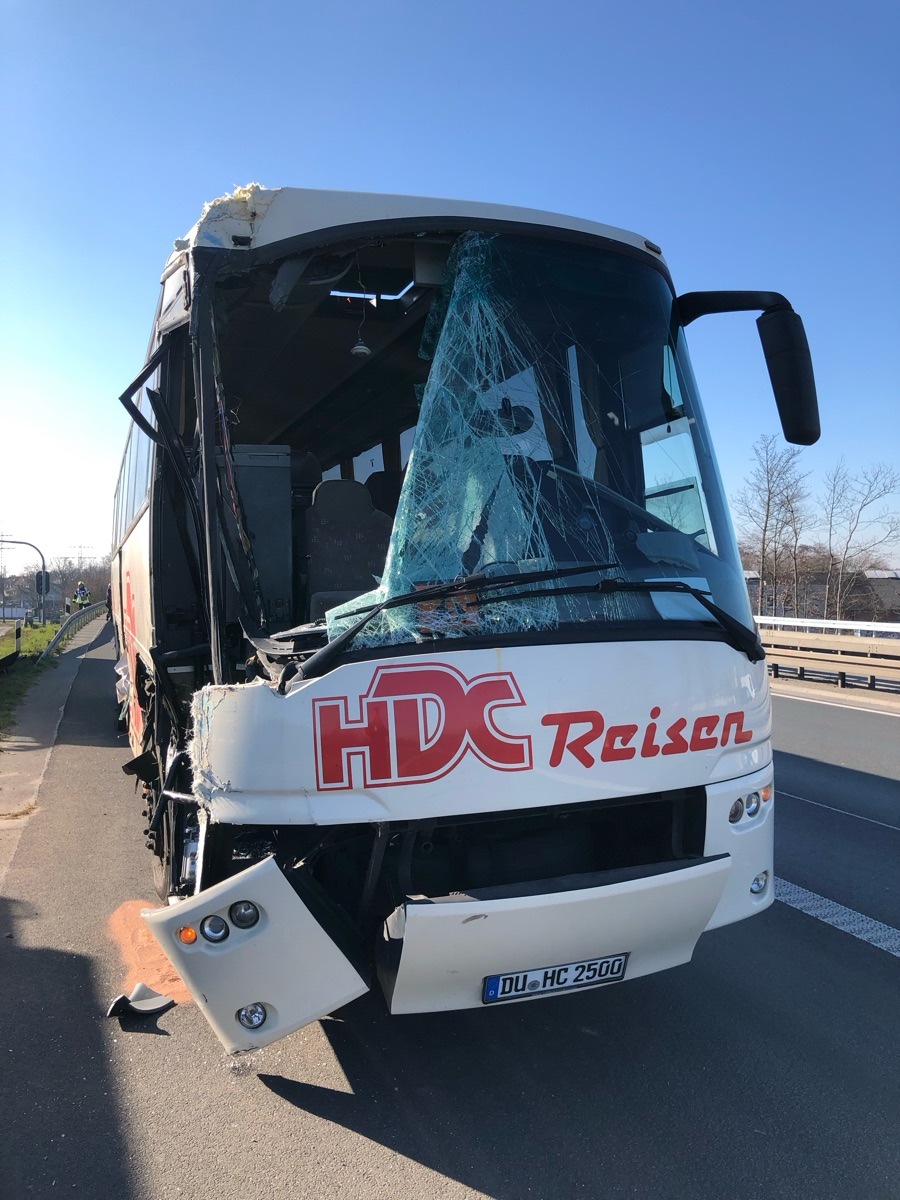Nach den Angaben der Polizei Münster ereignete sich der Unfall am Mittwochmorgen (1. März) gegen 9.50 Uhr auf der A42. Zwischen den Anschlussstellen Gelsenkirchen-Zentrum und Gelsenkirchen-Schalke wollte der mit 39 Kindern besetzte Bus offenbar den Lastkraftwagen links überholen.